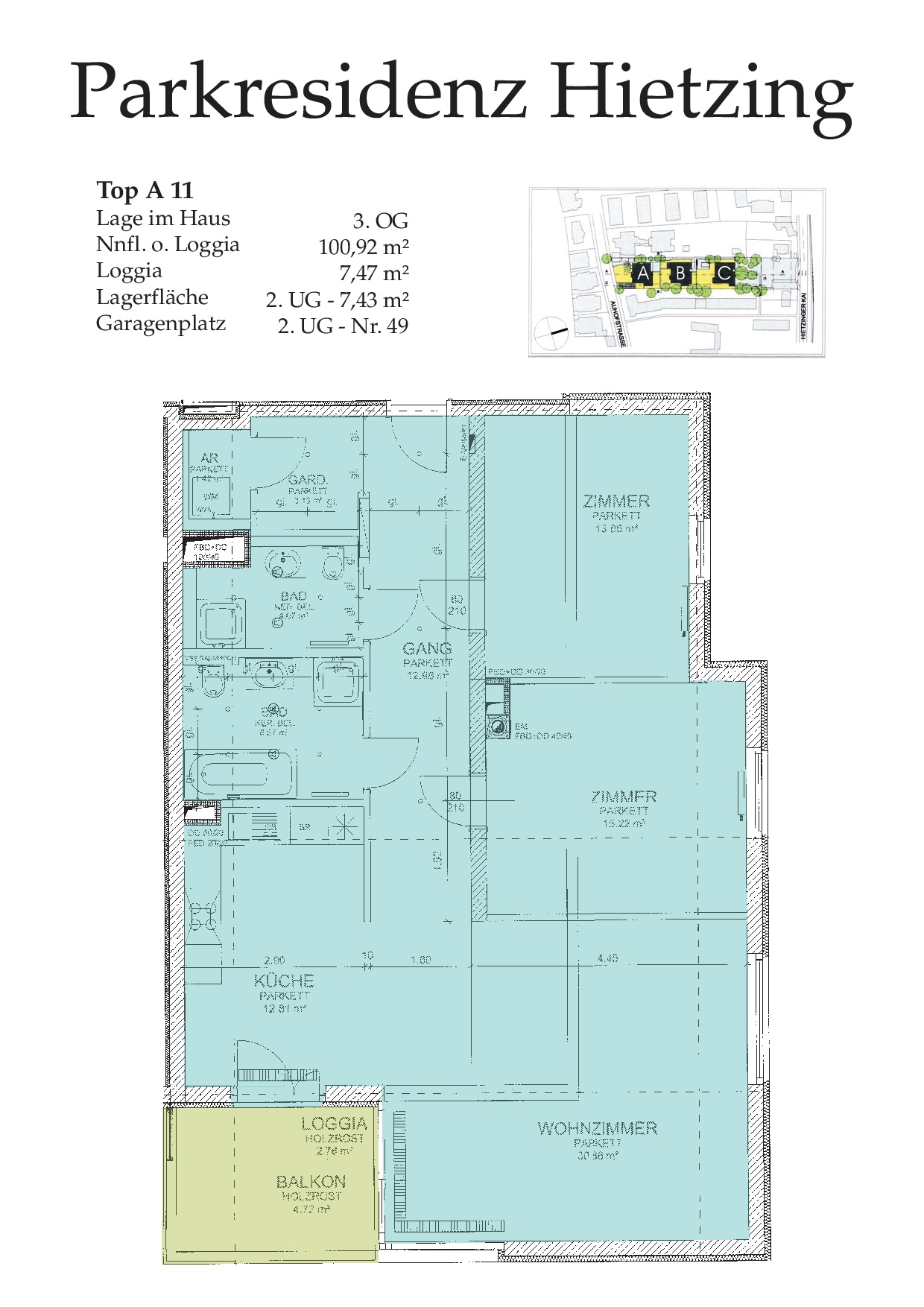 Auhofstraße „Parkresidenz ALT HIETZING“ 3-Zimmer-Eigentumswohnung gut vermietet bis 04/2029 mit 18 m2 großer Terrasse 298 m2 Eigengarten und Tiefgaragenplatz (Fitnessraum, Sauna) U 4 Nähe