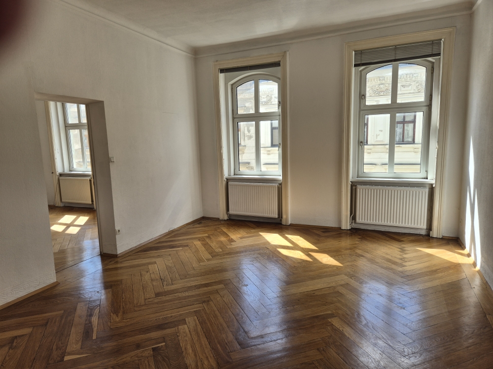 Die lichtdurchflutete, gemütliche, 3-Zimmer-Wohnung befindet sich in einem Altbau , die Wohnung hat ein Ausmaß von 84,3 m2 und befindet sich im 3. Stock ohne Lift.