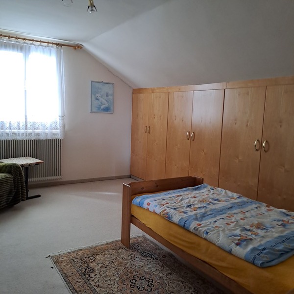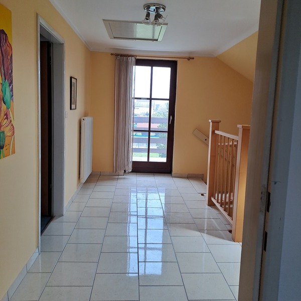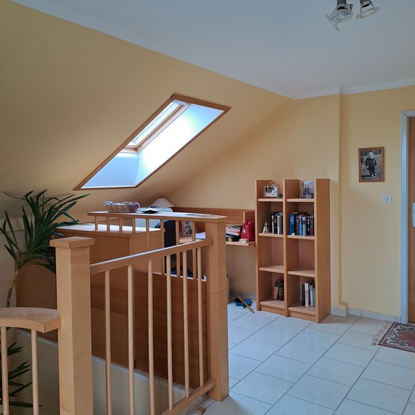 Vom Vorzimmer aus führt eine elegante Treppe direkt in das ausgebaute Dachgeschoss. Dort gelangt man über eine zentrale Diele in drei weitere helle Zimmer, die jeweils getrennt und somit unabhängig voneinander begehbar sind.