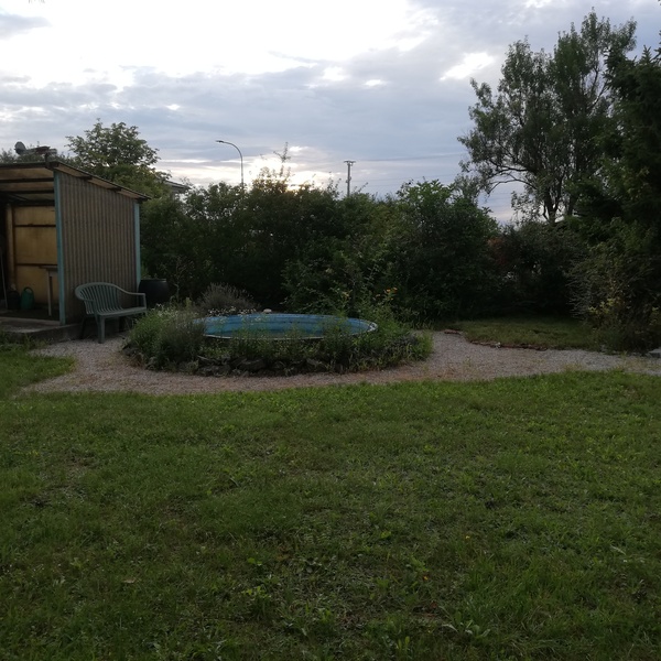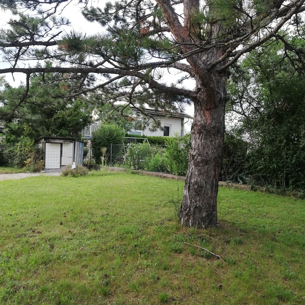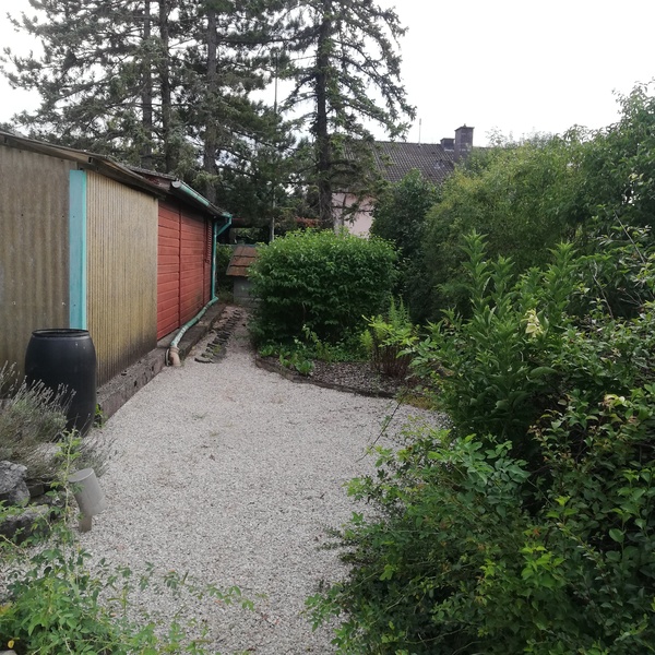 Ab sofort gelangt ein großer, ebener Baugrund mit Altbaumbestand zum Verkauf. Auf dem Grundstück befindet sich ein kleines Gartenhaus mit Wohnraum, Bad, WC und einen von außen begehbaren Abstellraum für Gartengeräte.