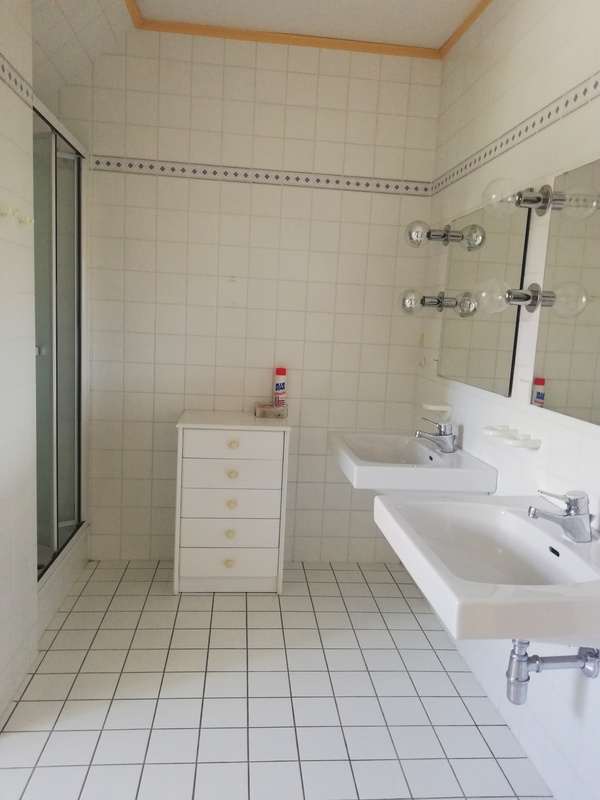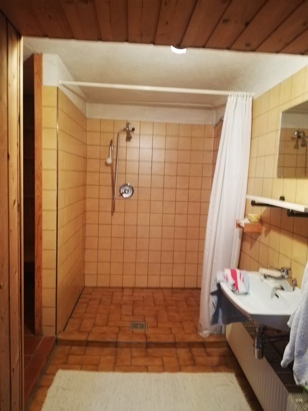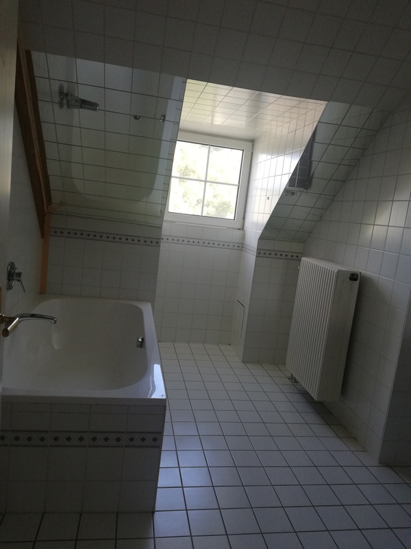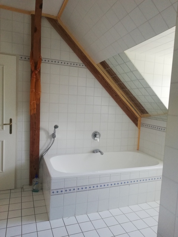 *) ein Badezimmer (mit Wanne und Dusche