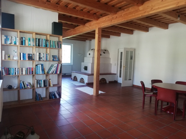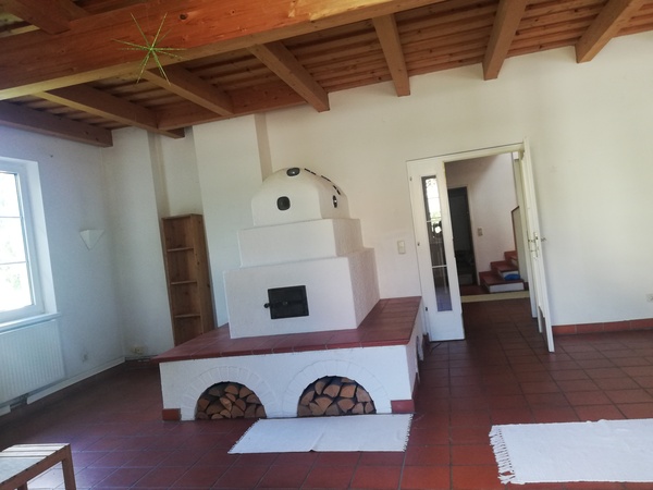 *) einen großzügigen Wohnsalon mit Kachelofen und Essbereich (ca. 61, 40 m²)
