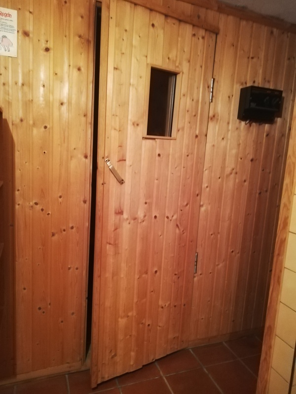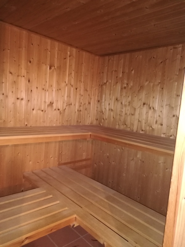 *) einen Wellnessbereich (mit Sauna und Solarium)