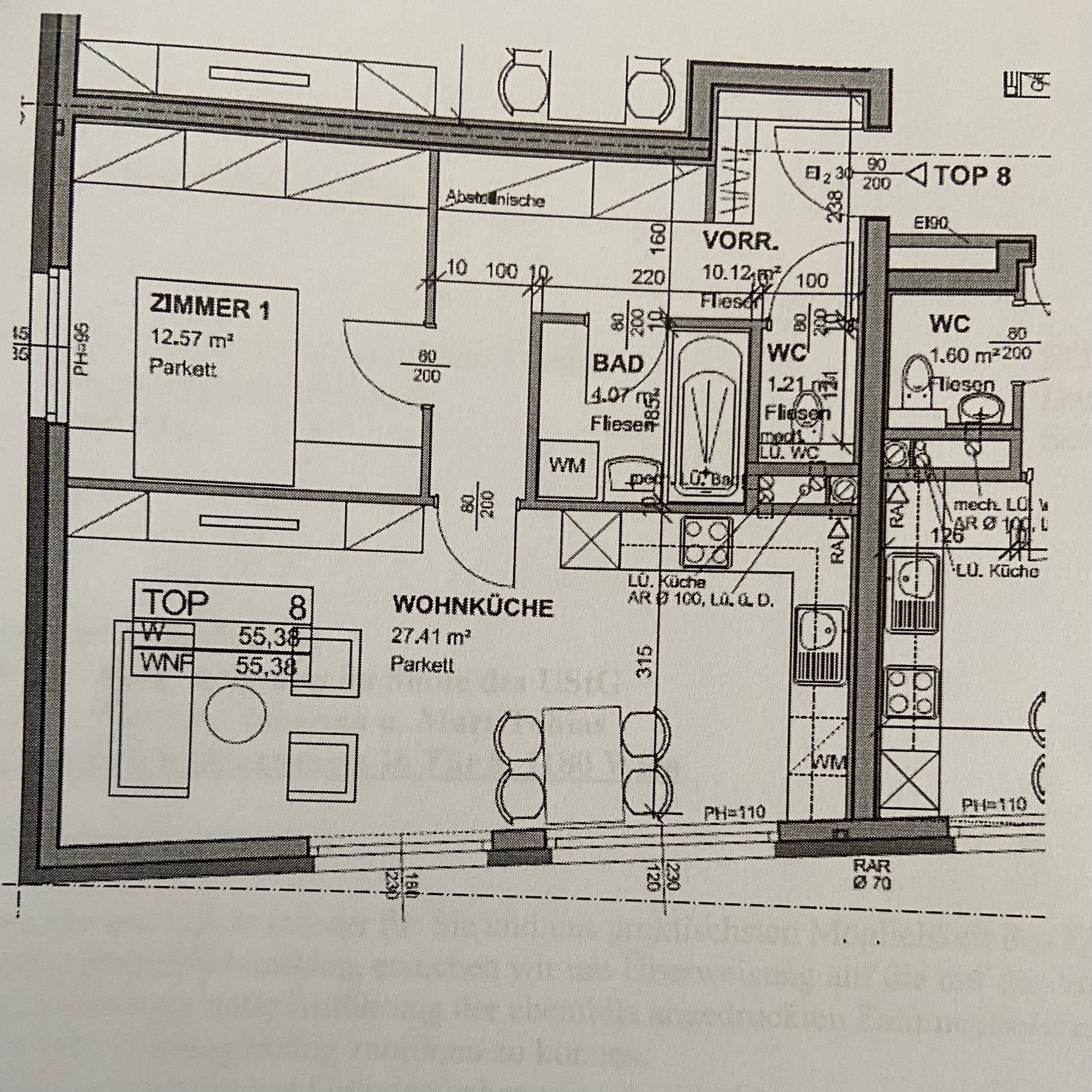 2-Zimmerwohnung befindet sich im 2.Liftstock und ist mit einer Zentralheizung und Eichenparkettböden ausgestattet, die Wohnfläche beträgt 55,38m2.